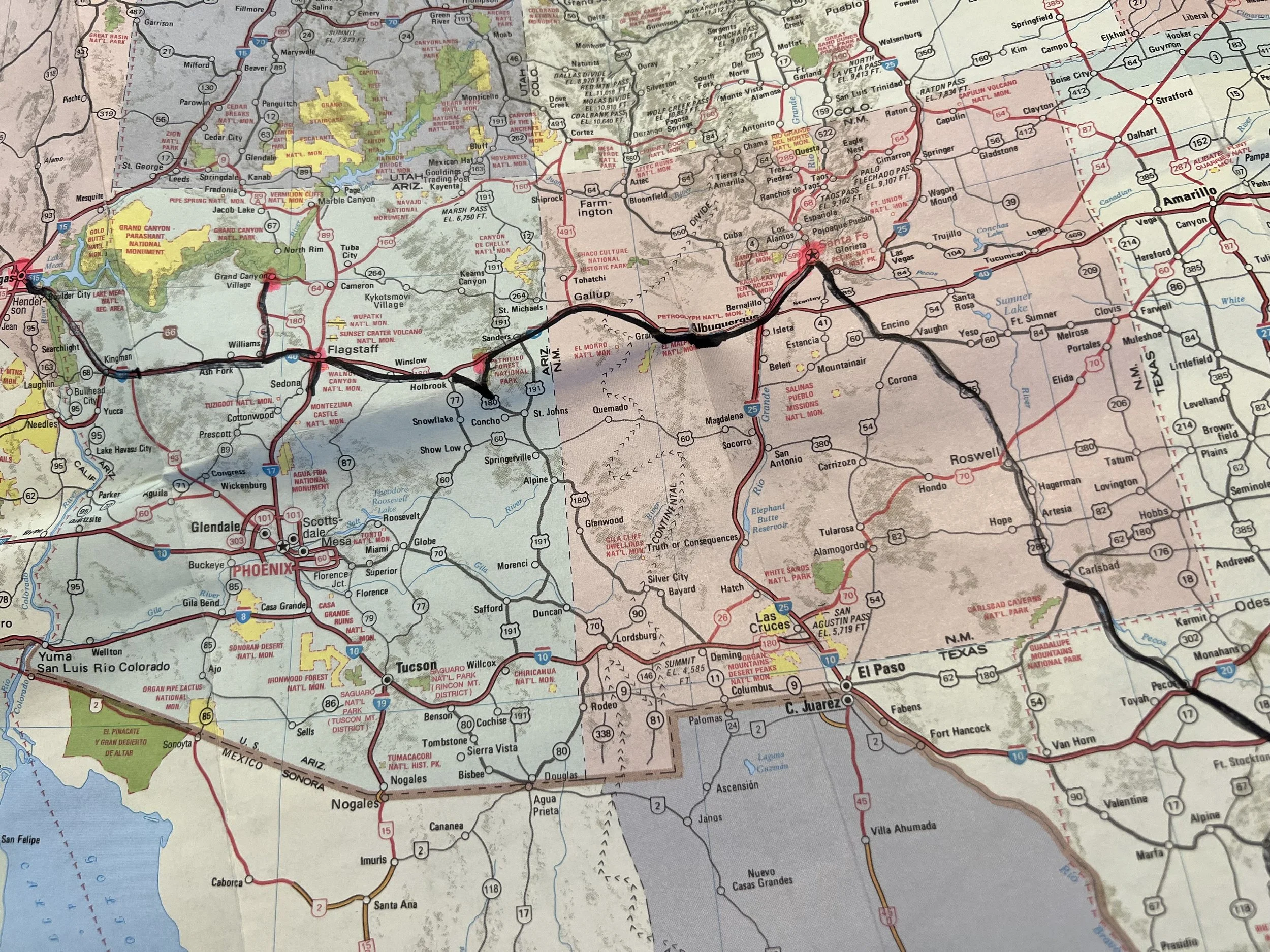 I got myself a physical map of the United States from AAA (AAA members can get free printed maps of a plethora of destinations) and highlighted the locations I absolutely wanted to visit. I am a sucker for a good visual aid and having a physical map to mark on helped me conceptualize my trip. Then I filled in the gaps.