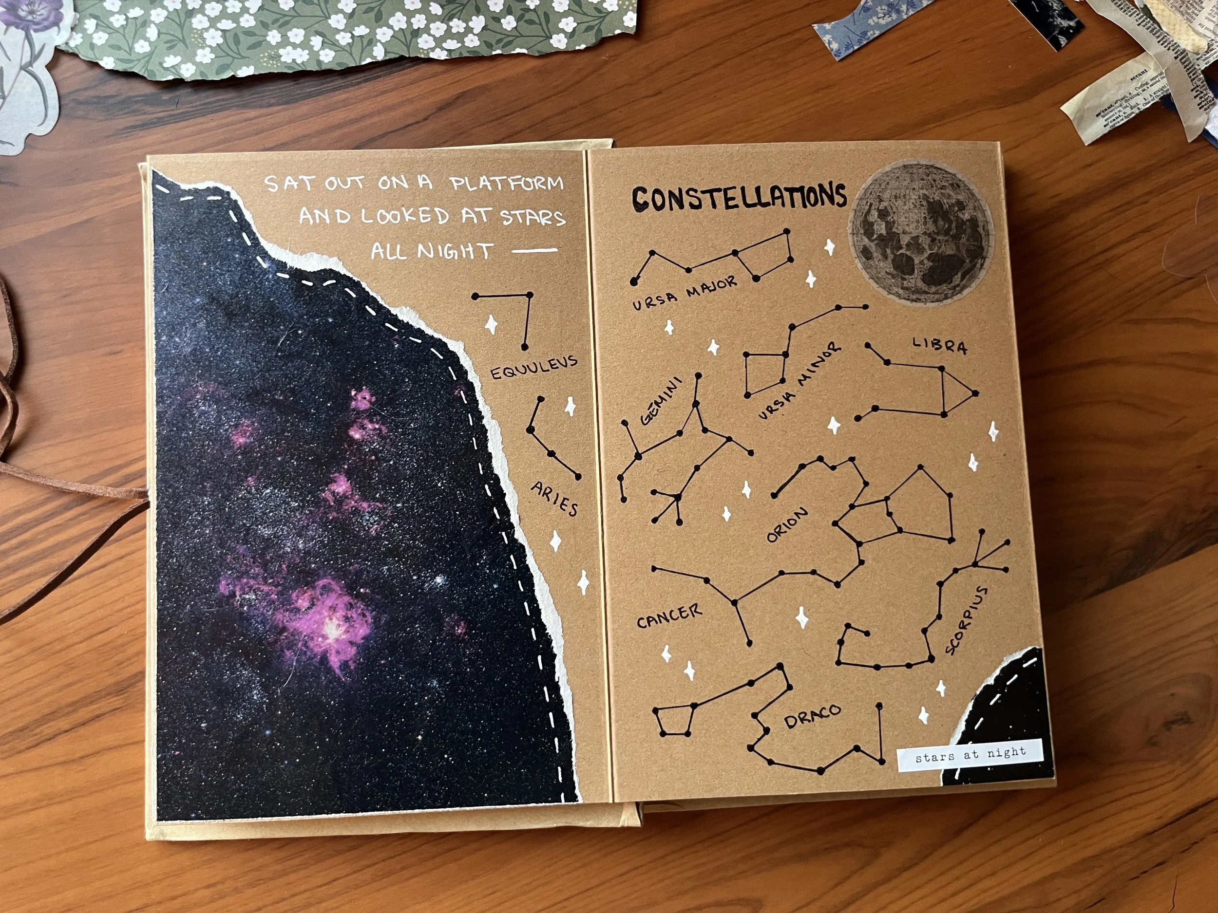 Scrapbooking is a creative way to journal and/or create art. You can tape receipts to your diary, or buy $300 worth of supplies to assemble detailed collages, complete with patterned paper, drawings, and aesthetic quotes.